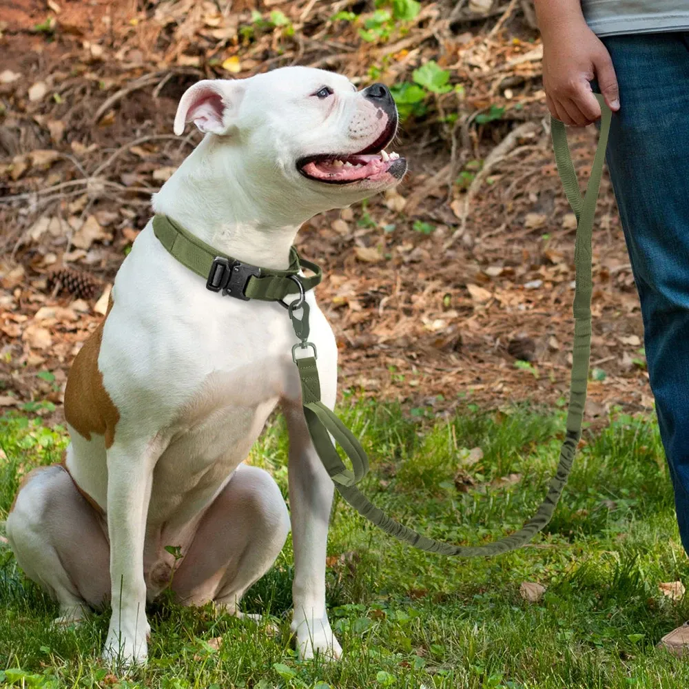 Made from military-grade nylon or polyester webbing, it’s built to last through brush, rain, and rough paws – strong enough to hold firm but smooth enough to guide with ease. Many models feature bungee sections that stretch gently, softening the shock when a curious pup lunges at a squirrel – rescuing your arms from the tug-of-war and helping both of you keep the pace calm.